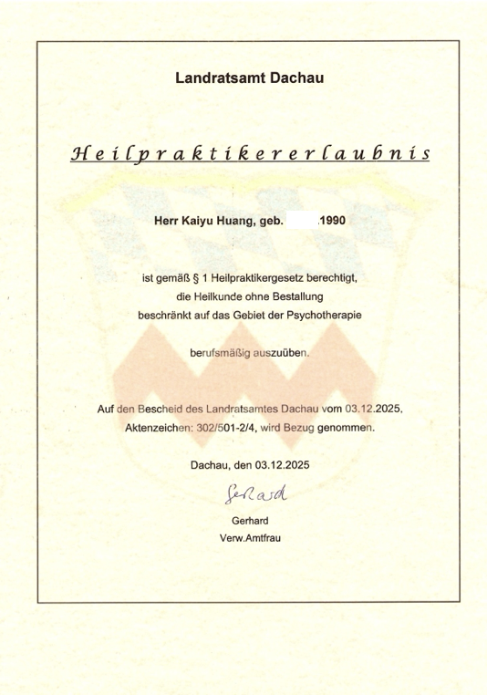 Challenging phases are a natural part of every human life. Yet no one has to go through them alone. From my own experience, I understand how valuable professional support can be in times of uncertainty, transition, or emotional strain. This personal insight led me, as an Asian living in Germany, to follow the path of becoming a Heilpraktiker für Psychotherapie and to open my private practice in Petershausen (Dachau) at the beginning of 2026.